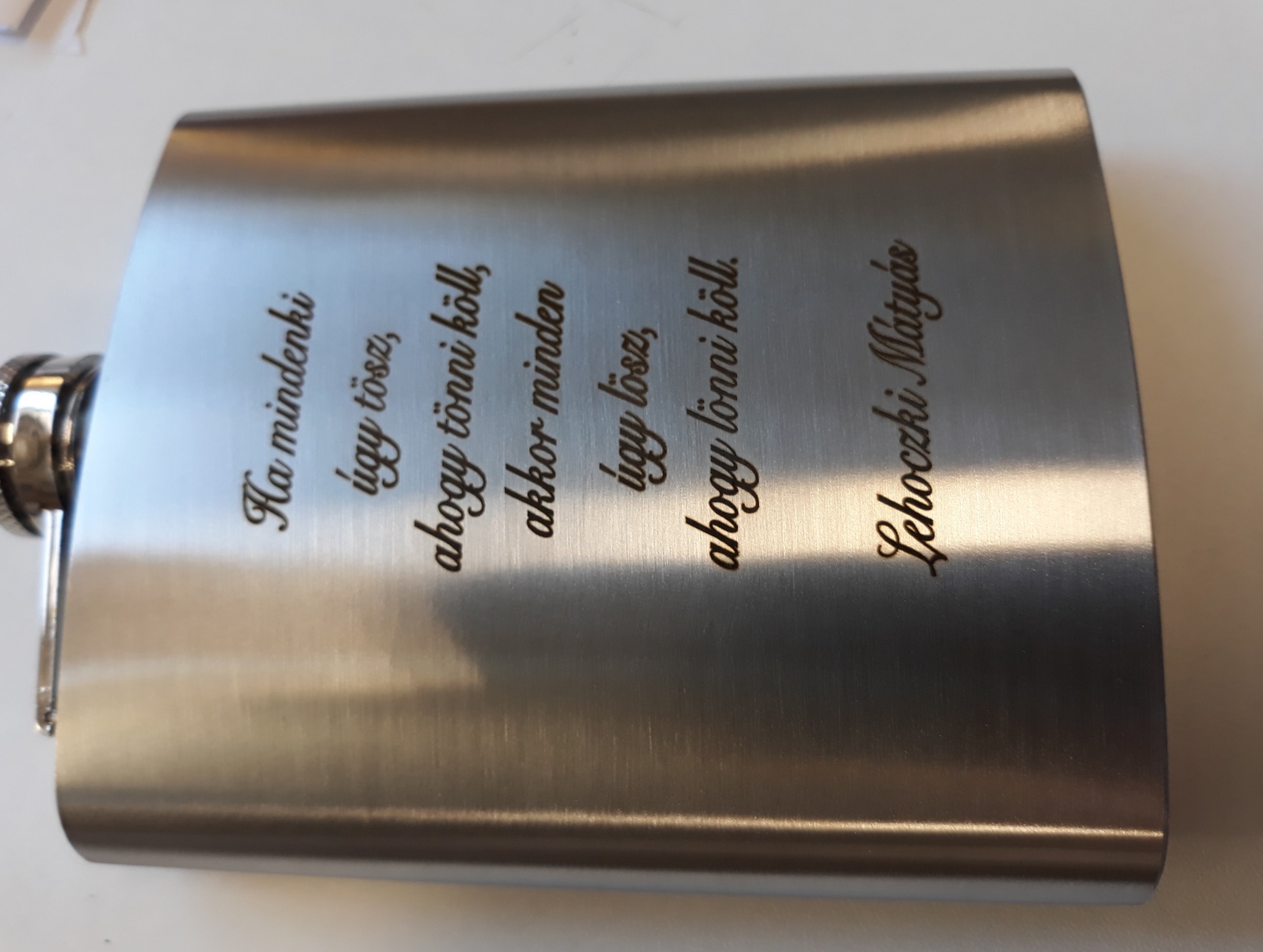 Anyaga:rozsdamentes acél Színe:matt ezüst színű Mérete:9 x 12,5 x 2 cm Csomagolása: papírdoboz űrtartalma: 210 ml