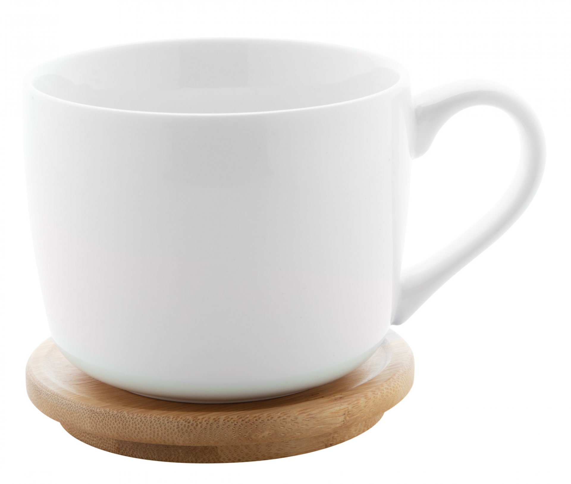 Kiváló minőségű, nagy méretű porcelán bögre (400 ml). ø100×85 mm.Fehérszínű és bambusz poháralátéttel. Ajándékdobozban szállítjuk. A gravírozás a bambusz tetőre/alátétre történik.