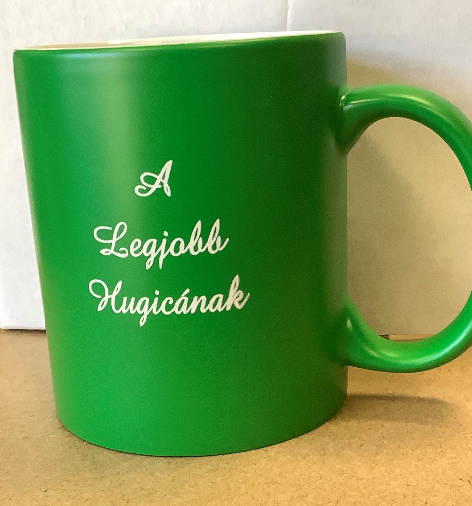 Színes kerámia bögre, fehér belső résszel, 350 ml. A gravírozott szöveg a bögre belsejével megegyező színű. Dobozban szállítjuk.