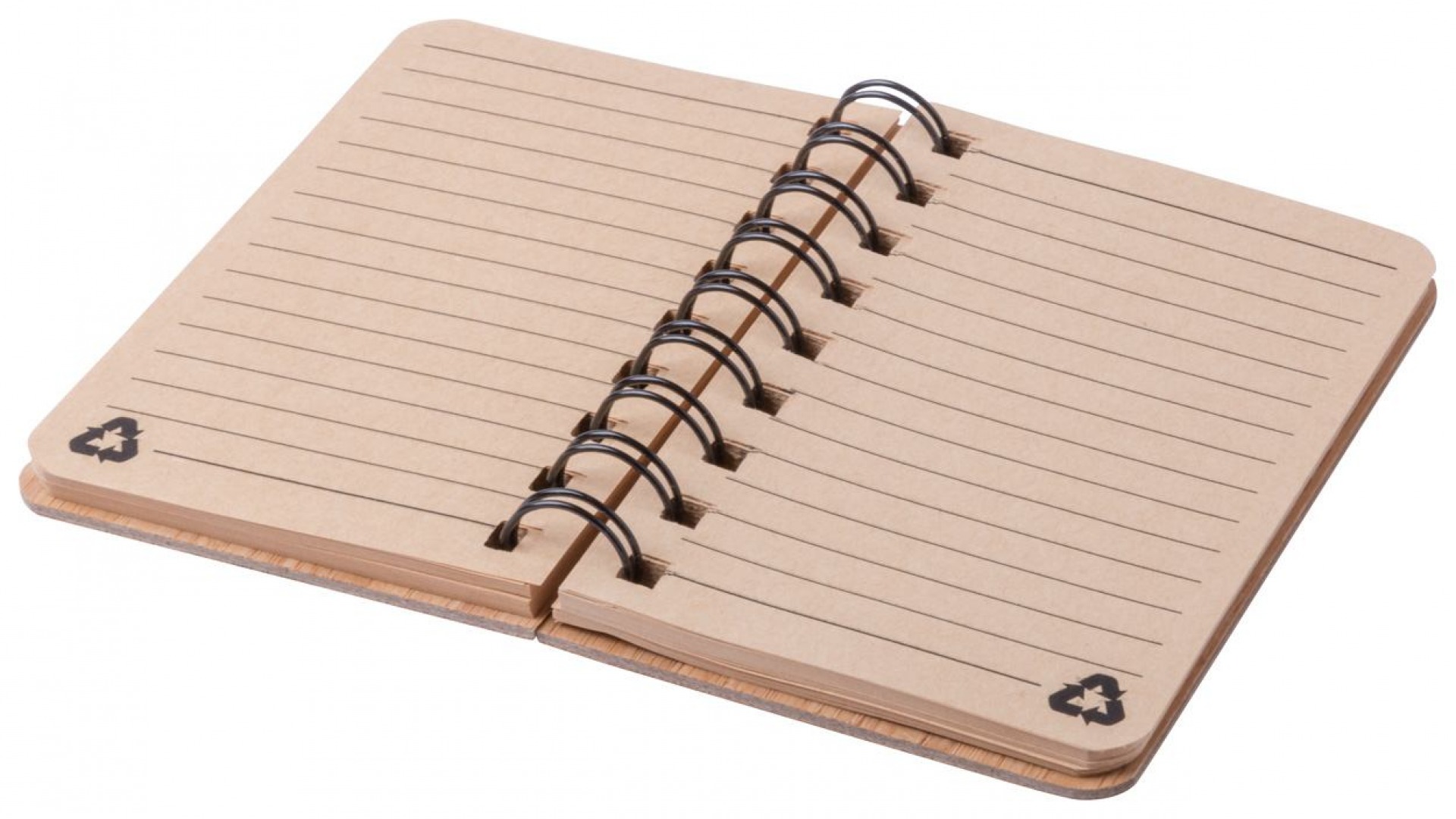 Bambusz készült spirál jegyzetfüzet 80 vonalas lappal. 74*105 mm méretű. Csomagolása celofán.