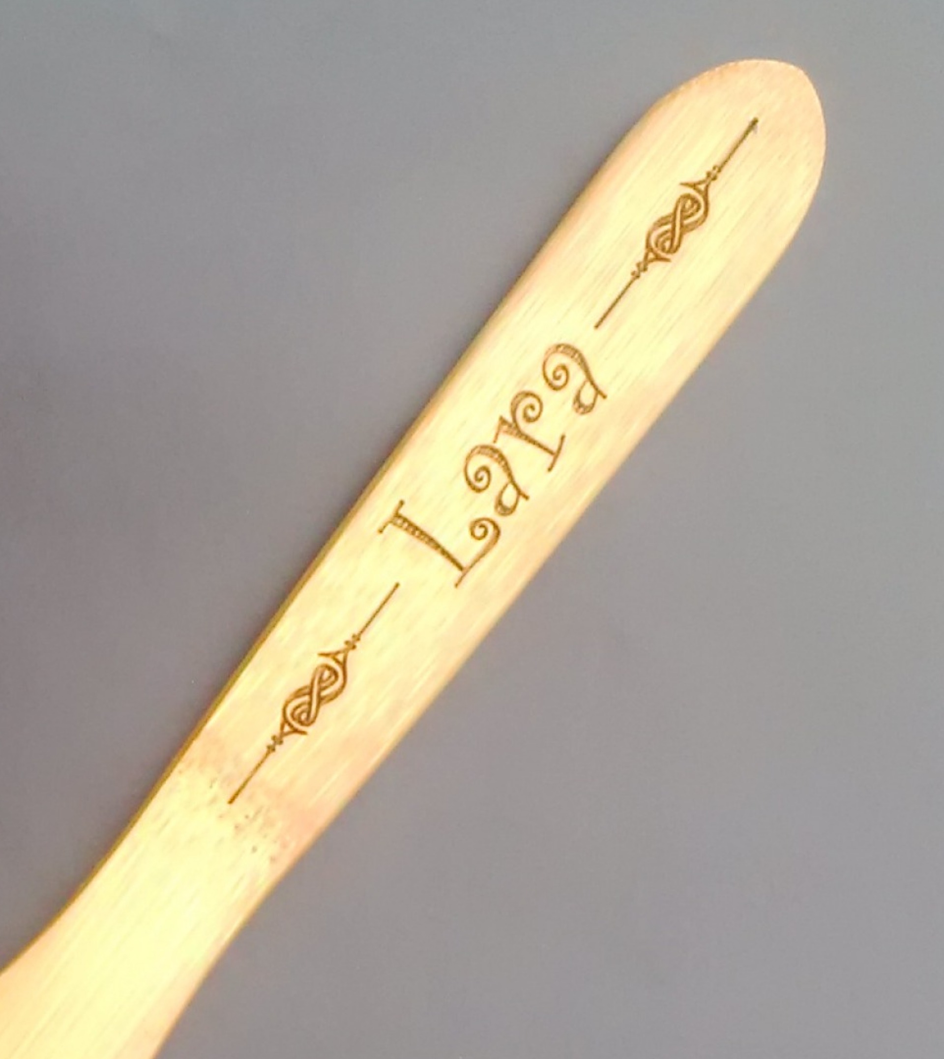 Mérete: 240x50 mm, Anyaga: bambusz Alapértelmezettként a nyelébe gravírozunk. 1 db