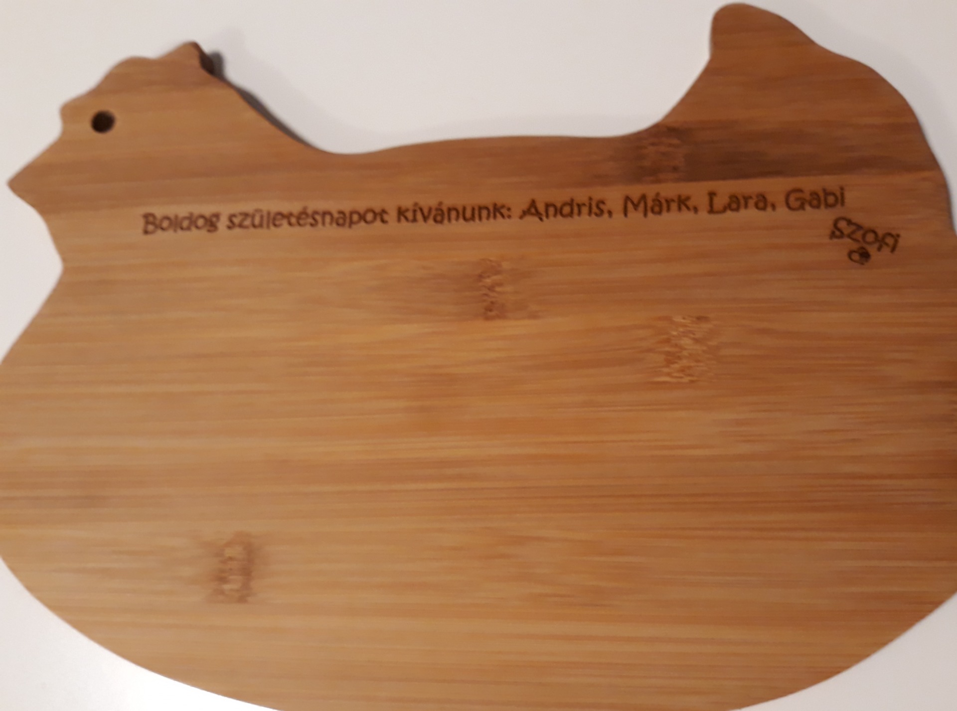 Csirke alakú bambusz vágódeszka 298×200×10 mm. Csomagolása celofán
