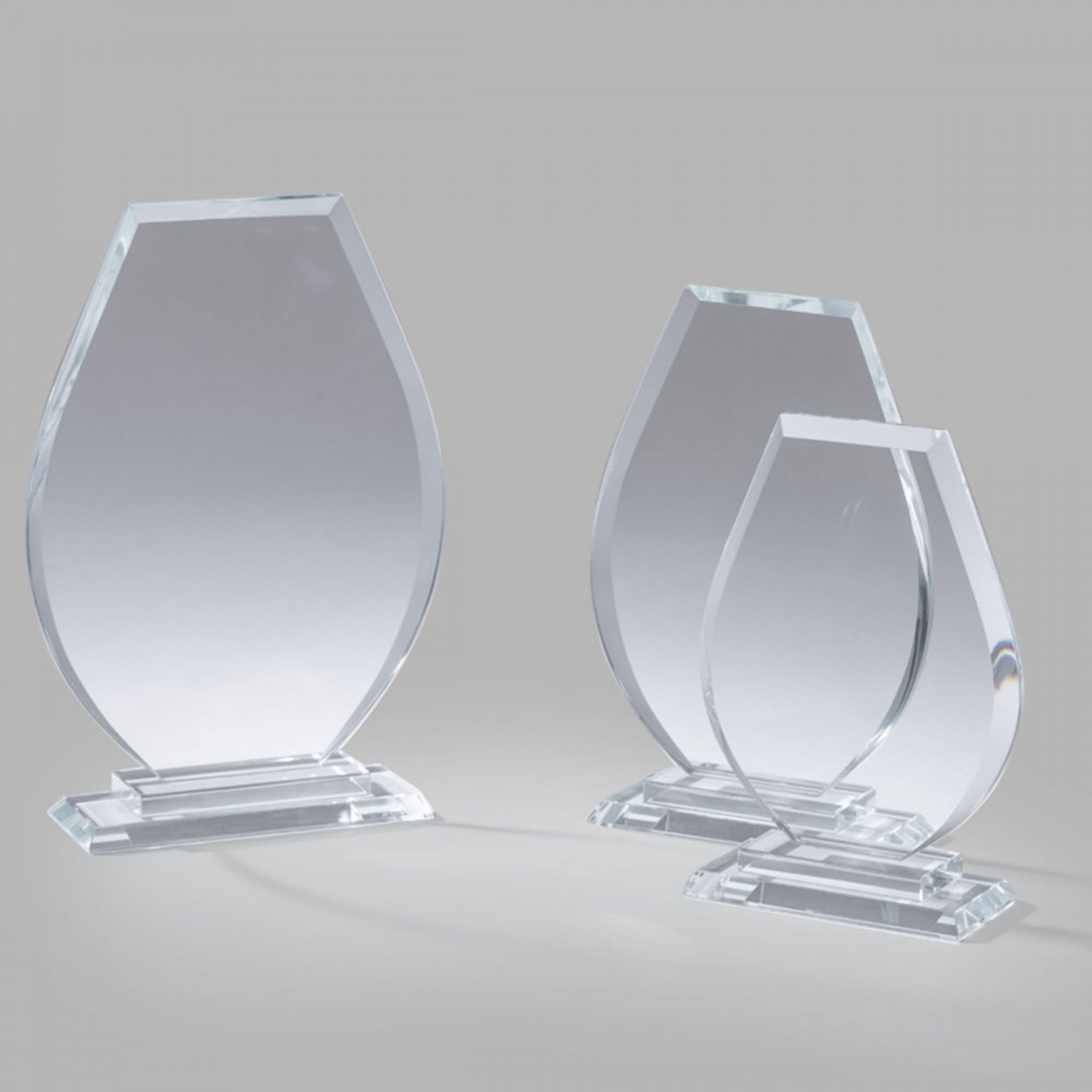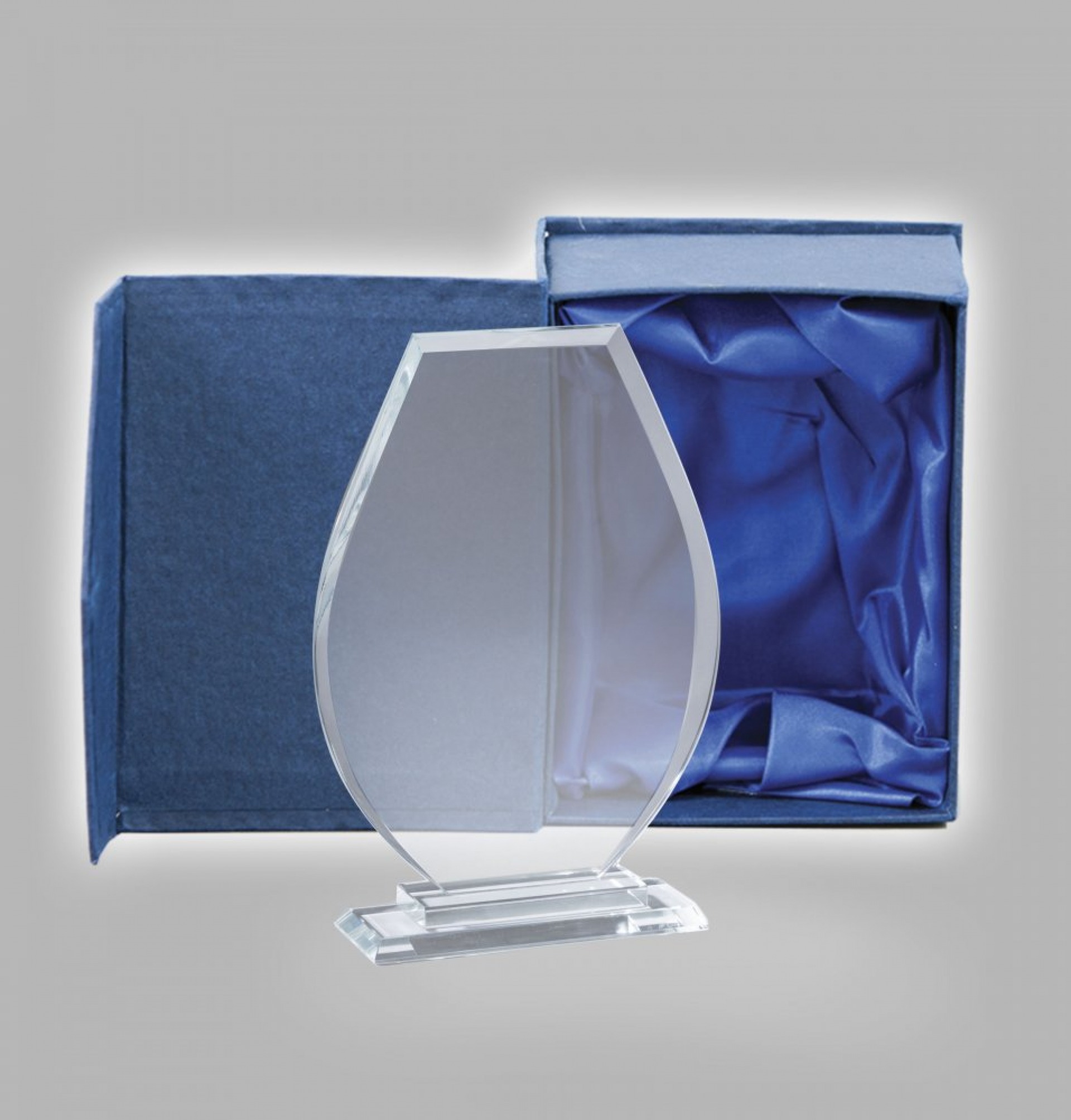 Átlátszó álló üvegdíj. Magassága: 23 cm csomagolása: díszdoboz