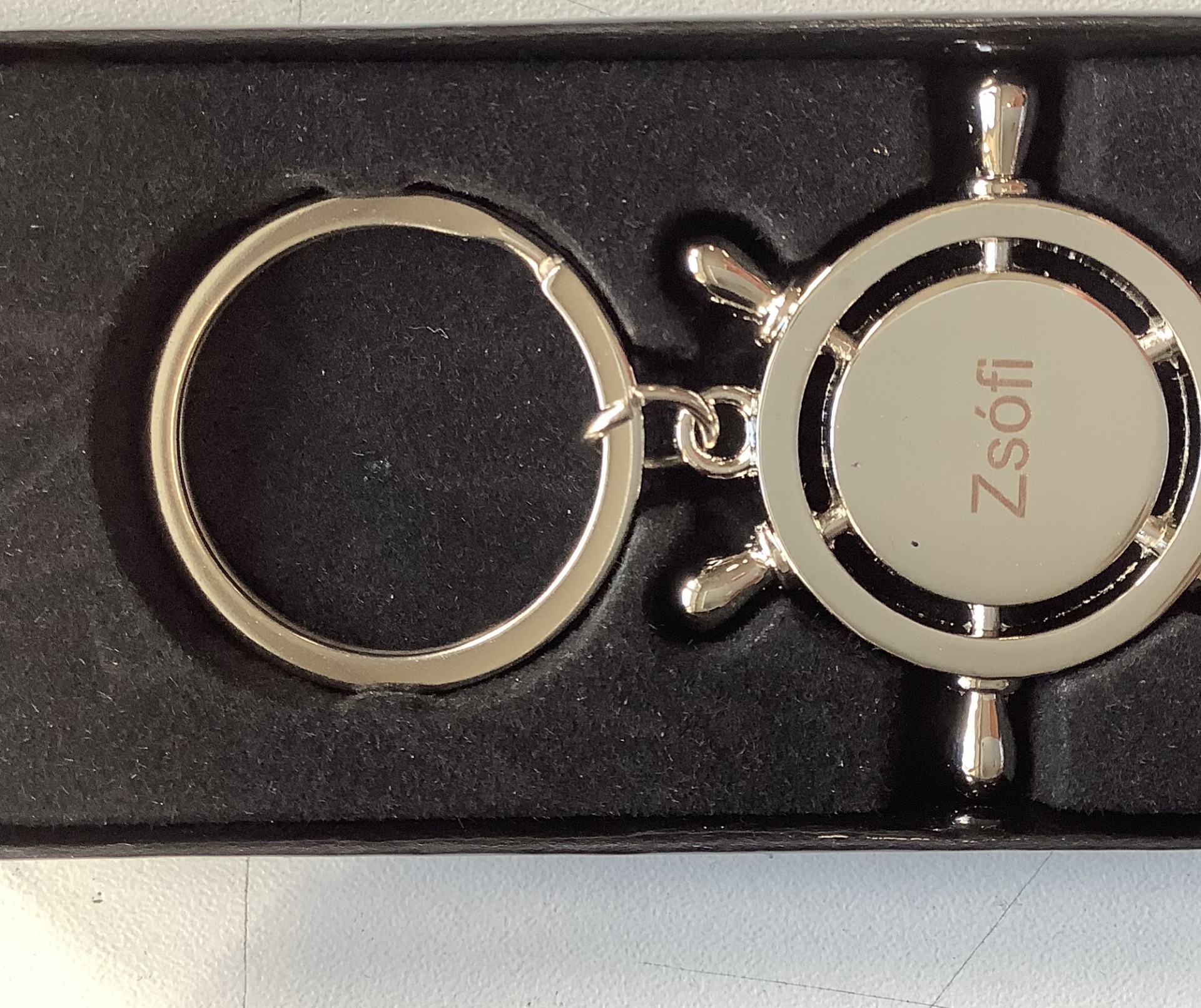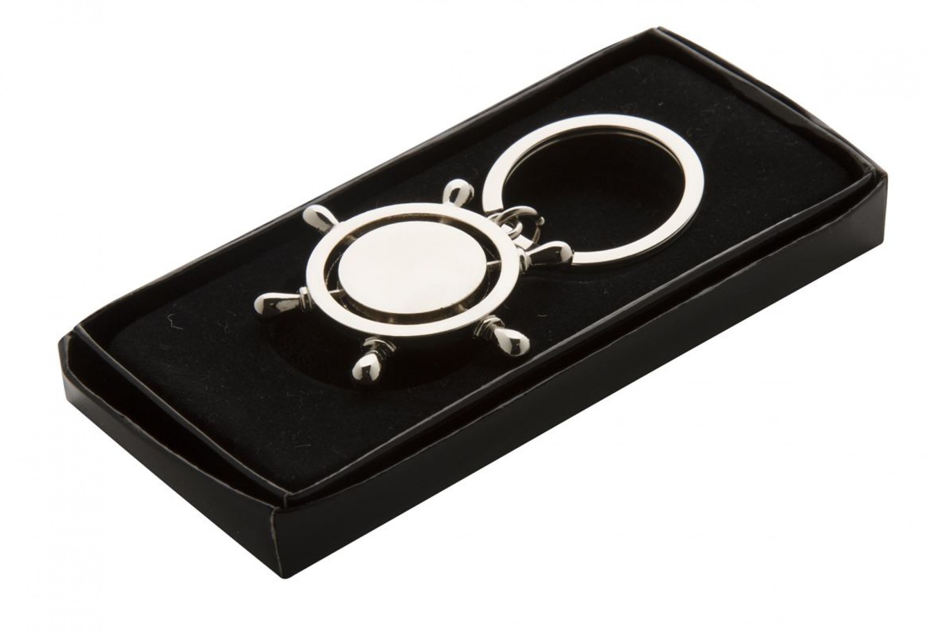 mérete: ø45×5 mm anyaga: fém Hajókormány alakú fém kulcstartó, fekete díszdobozban szállítjuk. A belső, kör alakú rész gravírozható.