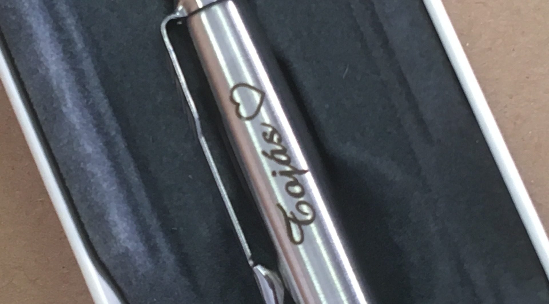 A gravírozás a toll felső (ezüst színű) részébe történik.